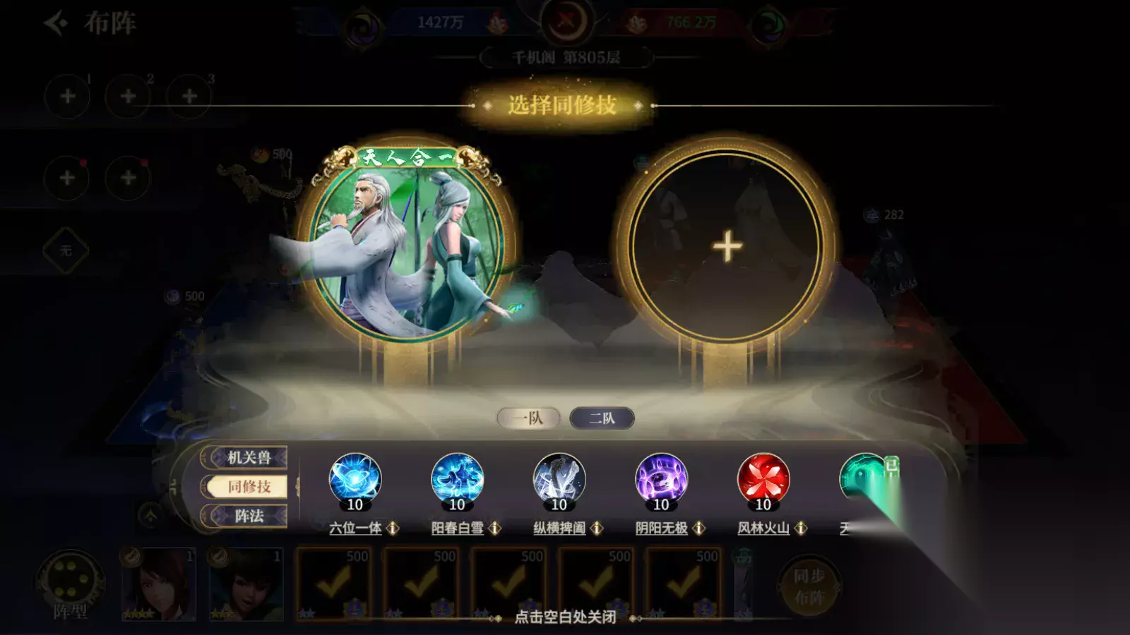 第二就是选择天下大同,这个是会按照敌人的防御力最低的角色来计算伤害的。前排很多防肉盾的直接就可以无视,不管你有多强大的防御属性都不管用。但该组合需要你怼血,且还要搭配三个橙色弟子,因此也是氪金大佬们的选择技能。但该技能克制效果出色,遇到强度高于我们的阵容有额外攻击加成。