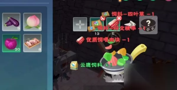 一、创造与魔法云鹰饲料制作和保底 1、云鹰保底至少要吃13包饲料才能成功捕捉到它。 2、云鹰饲料包由符文包、优质饲料肉块和“饲料-四叶草”合成的。
