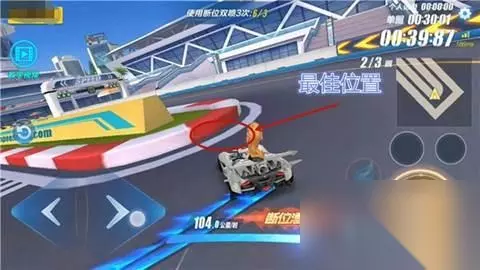 第三步:漂移过弯后(最佳位置如下图)按下右(左)向键,同时再次按下漂移进行断位拉车头。