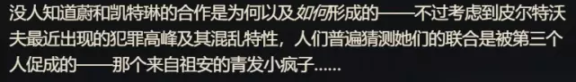 到这里似乎线索中断,金克丝的疯狂将要成为未解之谜,突然一句话引起了我的注意。