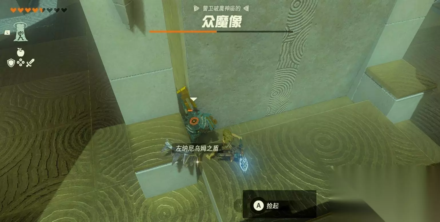 使用刺盾棒的敌人移动速度最快,可能会被巨石卡在角落中。将其消灭后拿到盾牌和刺盾棒。