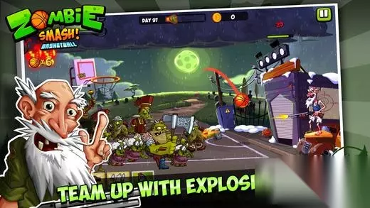 虽然僵尸还是那些慢吞吞的恶心无脑僵尸,不过和《植物大战僵尸》的塔防玩法不一样,在本作中,玩家手中的篮球并不可以发射弹药或者化作墙壁。在老爷子的院子里有个篮球框,玩家只需要划动屏幕篮球丢进框中就可以积累能量值,当能量值足够便可以将篮球换作炸弹、地雷、冰冻弹等等道具投掷到僵尸群中,造成大量伤害。