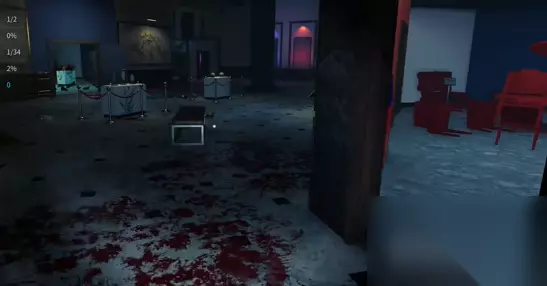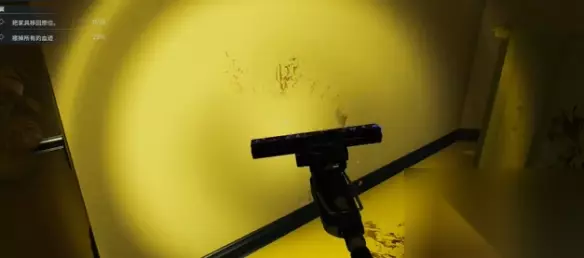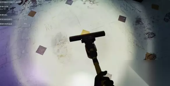 3、放置一个紫光灯,可以看到场景中的血迹变成了亮红色。 4、然后先清理卫生间的血迹,同时清理卫生间的垃圾。