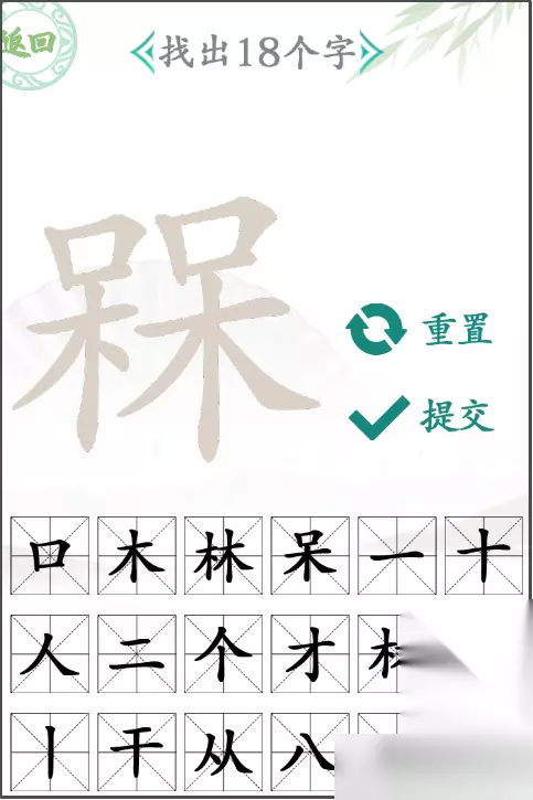【汉字找茬王攻略大全】 汉字找茬王找字槑怎么过 关卡:第145关,找字1 关卡提示:找出18个汉字 图文攻略: 1、槑字可以说是一个十分冷门的汉字了,玩家需要在这个字里面找出18个汉字。