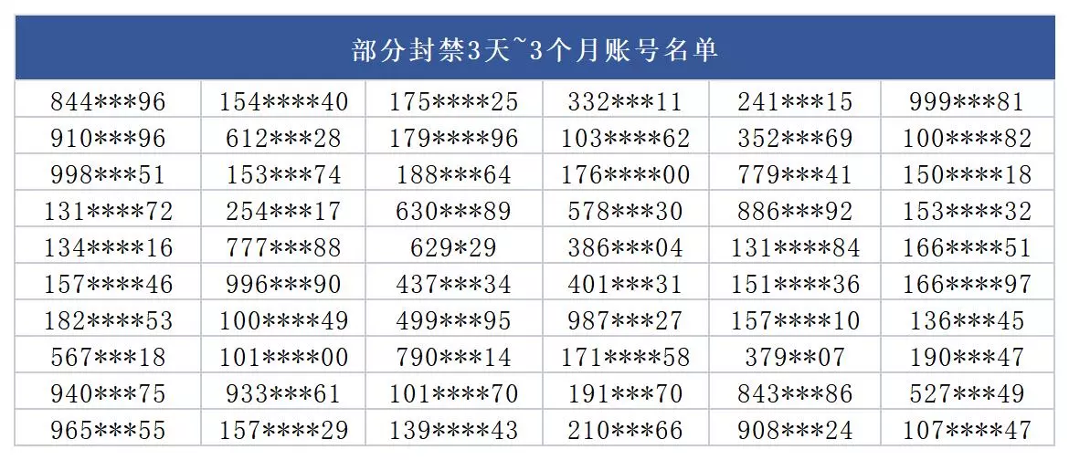 部分封禁名单公示如下:
