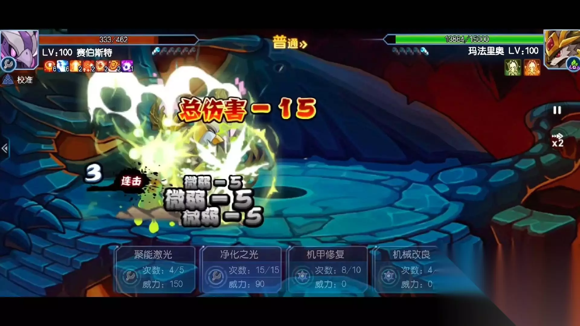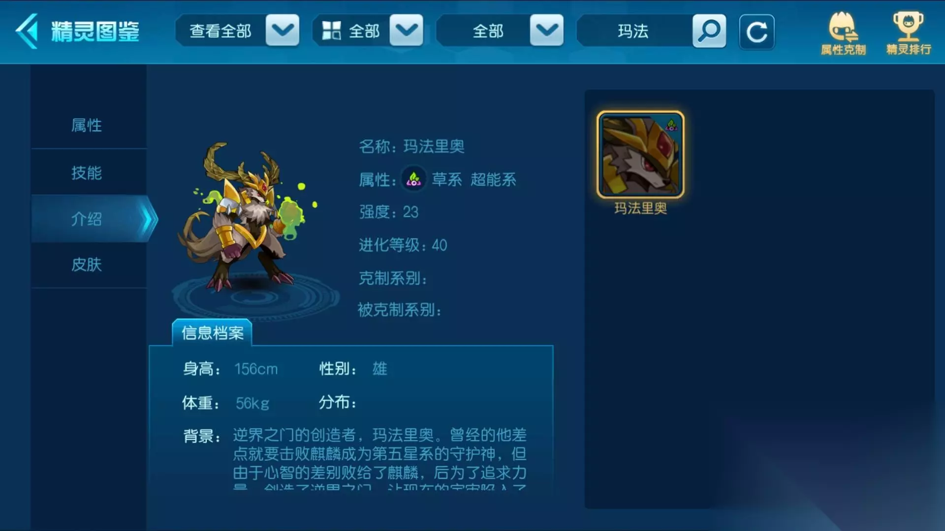 二、打法技巧 玛法里奥虽然各方面能力卓越,但是防御力却是他的短板,考虑到boss属性变换以及低血量恢复所有生命值等众多特性,推荐使用拥有高爆发技能的精灵,不断提高自身属性增益后直接将玛法里奥秒掉,不给其恢复生命值的机会,利用如缪斯等可以快速叠加属性增益的精灵会有更高的挑战成功率。