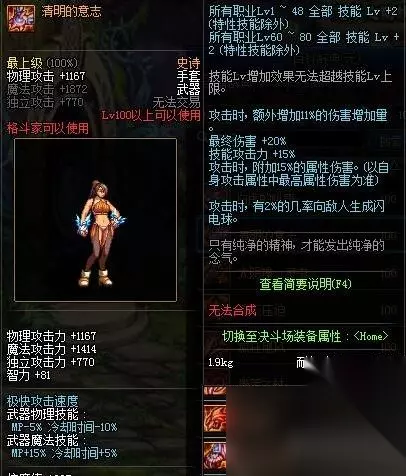 女气功师装备搭配 1、武器推荐:清明的意志 技能词条强度比较高,推荐用。当然主要还是刷到啥穿啥,比较实用。