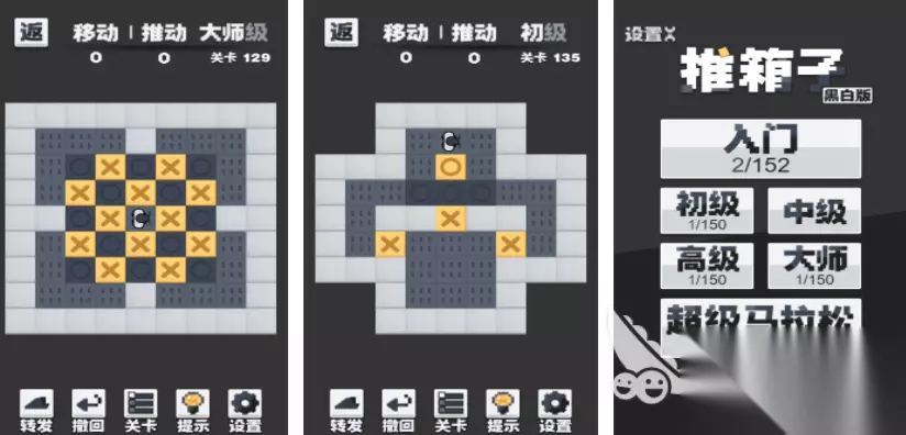 成语是众多传统文化中的其中一项,现在通过看图猜一猜,每个玩家都可以以关卡的形式,开启一场猜成语挑战,关卡中会给出不同的图画,玩家需要根据图画表达的意思,在下边的文字中选择出正确的文字,只有成语正确才能顺利通关,每一关都会有时间限定,要迅速判断并且点击正确的文字。 高速下载 普通下载 优先233乐园APP下载 7、《推箱子黑白版》