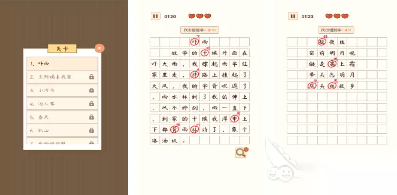 汉字是在日常生活中接触最多的,在科技的发展,人们都进入了无纸化的时代,不需要再去书写汉字,这时候经常会误认一些汉字,进入到汉字找茬王这个游戏之后,玩家就可以成为一名老师,需要按照要求完成作业批改任务,每一关里都会给出一篇古诗或者是作文,需要准确点击出所有的汉字才能顺利通关,关都会有时间和生命值的限制,玩家需要快速浏览给出的文字,并且选中错误的汉字。 高速下载 普通下载 优先233乐园APP下载 5、《萤火玉碎》