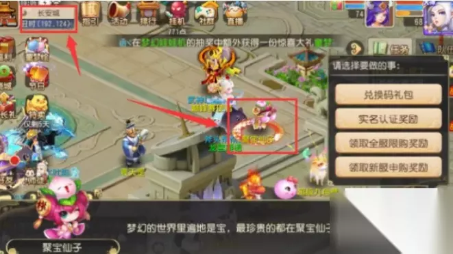 兑换码使用方法: 1、首先我们要登陆梦幻西游手游界面 2、打开左上角地图在长安城地图找到聚宝仙子并点击它 3、就会弹出兑换码礼包界面了,点击后直接输入即可。