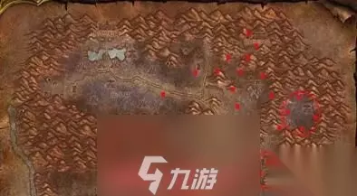 2、燃烧平原 红色的为瑟银矿产出位置,比较散但是可以在路上获得其他矿石。
