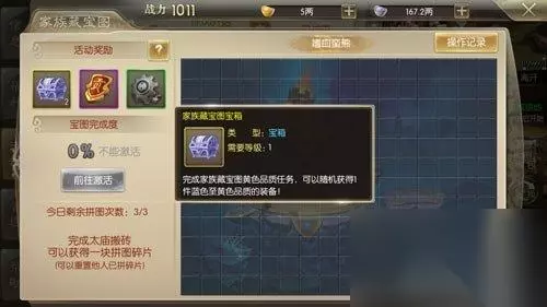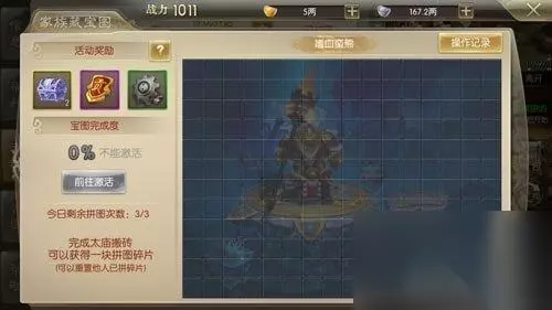 和你的家族成员一起来拼藏宝图,拼图完成之后就可以激活这个任务,任何家族管理员在每日的晚上十一点二十五分钱使用藏宝图,我们再根据指示规定击杀boos就可以获得大量的装备奖励,同时也为你的家族做出了你应有的贡献。