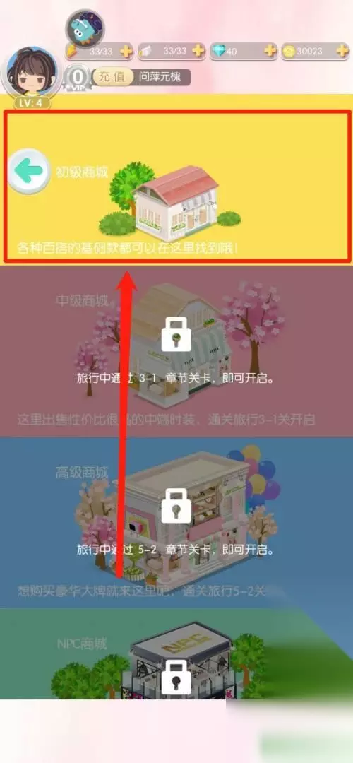 2.进入后,点击页面中的【初级商城】图标。
