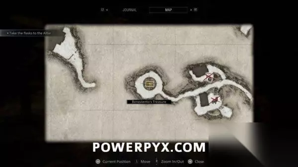 跟随剧情进度(拿到第二个玻璃瓶之前),8个宝箱会被公爵标记在地图上(但之前已经拿到一个了),宝箱中可能是武器,也可能是可出售换钱的道具(收购价很高)。 除了贝内文托的宝藏之外,其它的宝箱都可以在后续返回村庄时获得,但要在前往工厂之前(无法返回的时间点)。 ※下方宝箱按照时间顺序排列,除了贝内文托的宝藏之外,其它的宝箱都可以在后续返回村庄时(前往工厂之前)获得。 《生化危机8》全宝箱位置,宝箱解法攻略 1、路易莎的传家宝 此宝箱是你从蒂米特雷斯库城堡回来后可获得的第一个宝箱。穿过休耕地区域回到路易莎家,在房子前的台阶上可以看到此宝箱,打开获得【路易莎的项链】。