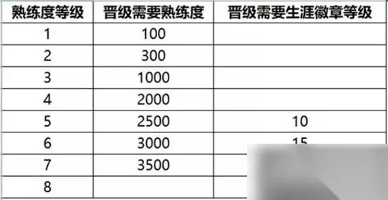 王者荣耀S32熟练度提升方法介绍>> 王者荣耀生涯徽章等级是什么 1、生涯徽章获得的额外熟练度之和/100即为生涯徽章等级。 2、生涯徽章等级会作为玩家熟练度等级晋级的条件之一。 3、不同等级熟练度晋级所需生涯徽章等级如图所示: