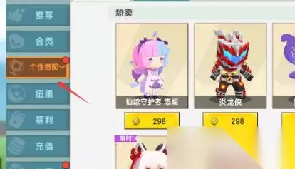 2、然后点击左侧栏的“个性搭配”,选择一款要赠送的皮肤。