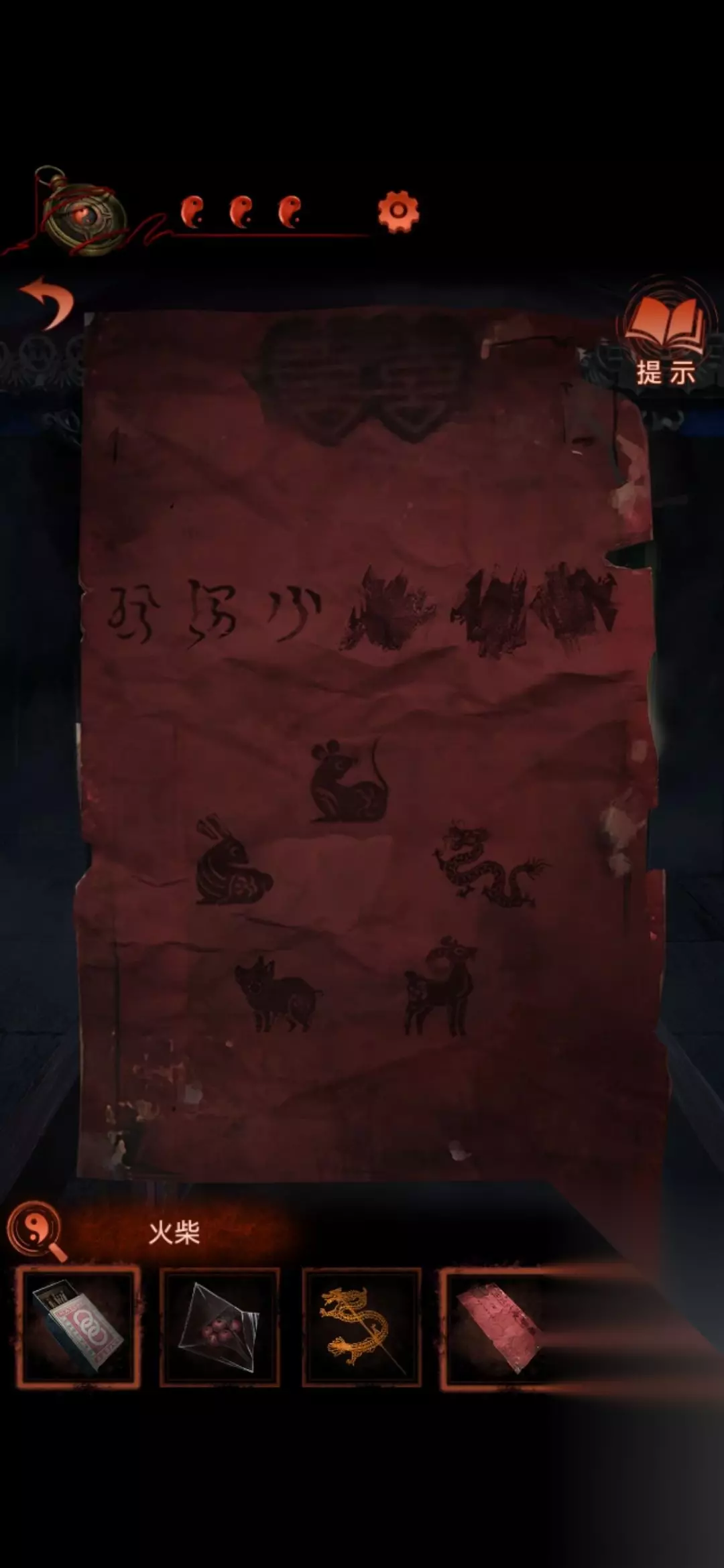 接着点开路牌,得到块玉佩。 5.把糖龙放到中间场景凑齐十二生肖。用火柴根据红纸背后图案点亮。得到老虎布偶。