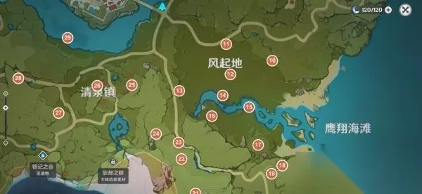 2、风起地和清泉镇18个 18号风神瞳在庙宇中,通关丽莎主线任务后自动获得。
