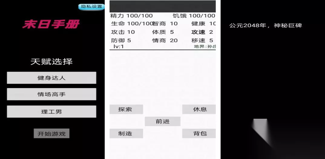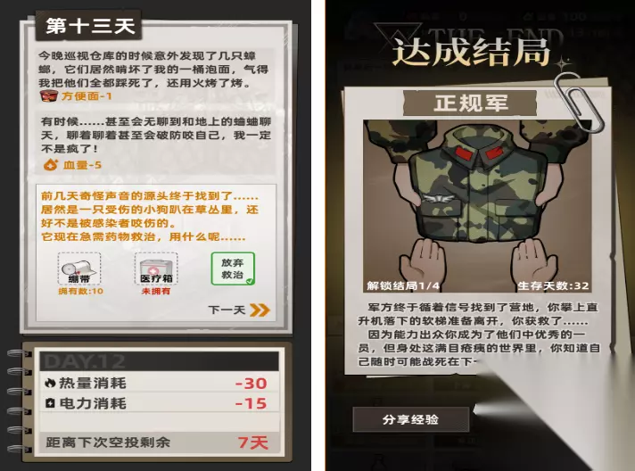 这是一款纯文字类的末日生存手游,游戏有一定的难度,画面是那种极简风格,除了文字之外什么都没有,所以玩家们在游玩之时能够更加沉浸于游戏剧情,有更深刻的体验感。玩家们要做的就是时刻牢记自己的各项属性值,并且仔细阅读触发的各种事件和选择条件,再根据自己现有的装备条件来进行推理判断。玩家每一次的选择都会触发不同的事件,而且大部分的选择关卡只有选择正确才能存活,快去试一试! 高速下载 普通下载 优先233乐园APP下载 本期2025必玩的单机末日生存游戏推荐就到这里啦,希望玩家们都能够在这充满着危险和刺激的末日世界内,体验到探索和求生带来的紧张与激动。