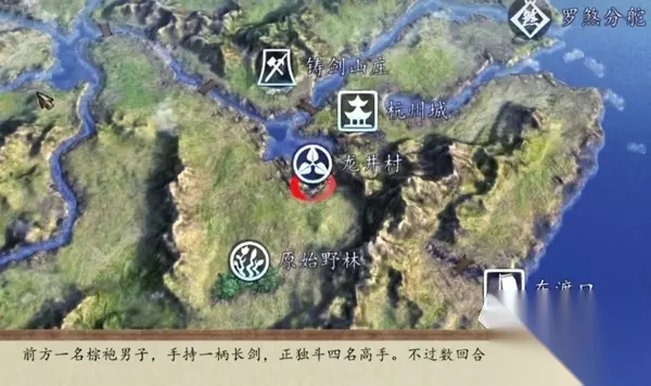 其实很简单,先来到大地图,然后照着地标前往东渡口,云游商人就在杭州城的右边。具体操作是进了东渡口之后,路上凉棚下面有一个NPC,那位就是商人。
