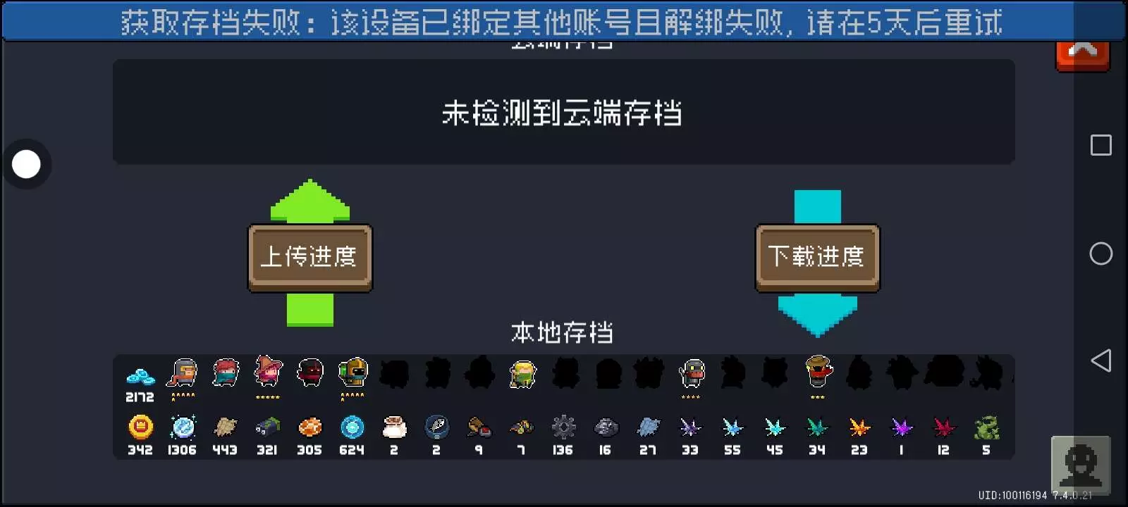 上传不了云存档。