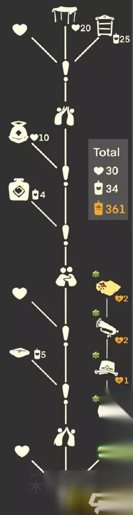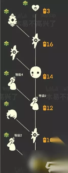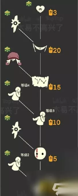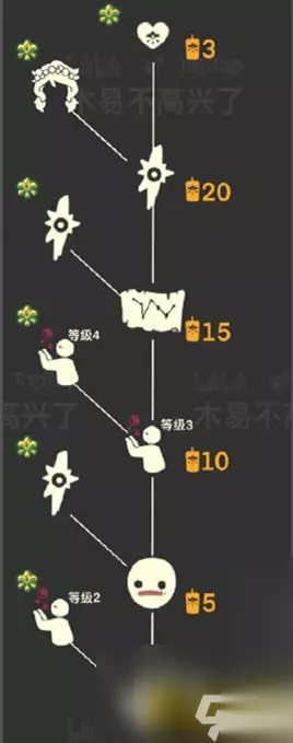 ③最后我们就能在树屋旁边看见这位植物先祖了。 【茫然植物学生先祖护送路线】 点燃先祖,要一直护送他到树上的书柜旁边。 兑换图 1、兑换物品:斜太头、灯笼、眼泪,面具、扶额头动作。 2、兑换价格:总计需要55根季节蜡烛。