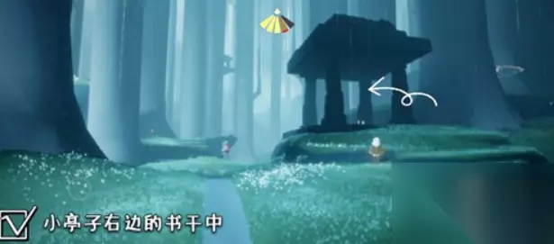 集结季向导先祖 ①首先要进入雨林地图,到时候会展示一段动画,指向树屋的方向,我们就往右边飞,找到树屋; ②下图的位置就是树屋的入口,从这里进入;