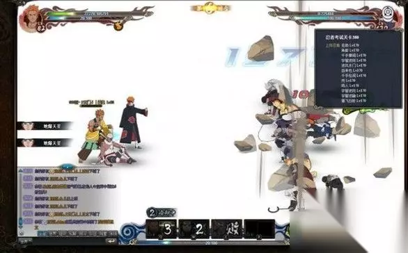 火影忍者OL380忍考攻略 战力站位技能如图。忍者要求天道、长十郎突破,技能选择看贴图。长十郎一号装备,天道二号装备。奇拉比血最少。