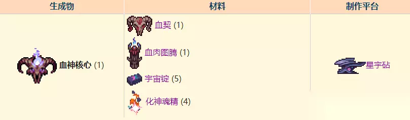是一个月球领主后可被制作的饰品,是旱海鲨牙项链的升级。它增加15点穿甲和15%伤害。 4、血神核心(减小体术攻击类Boss的威胁)