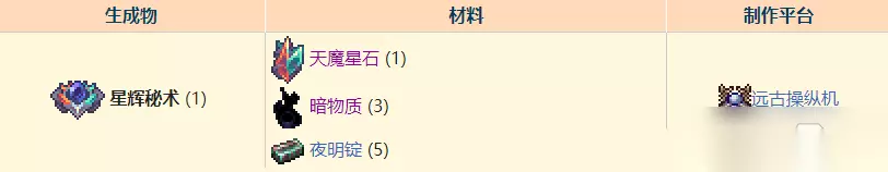 是月球领主后打败噬魂幽花百分百获得的饰品,可提供多种状态提升。装备了该饰品的玩家将为所有队友提供灾劫之尖啸增益,而该增益则提供了该饰品带来的所有加成。 12、星辉秘术(对抗弹幕攻击多的Boss可用)