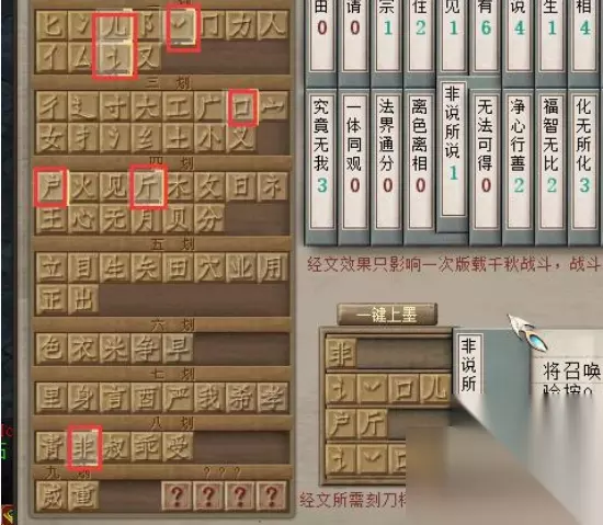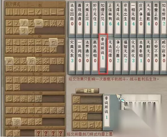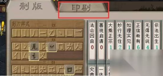 3、我们点击左边的闪烁的文字,刻刀样式。全都点击完毕之后,再点击上样制版,不要点错了。就一张经文!!