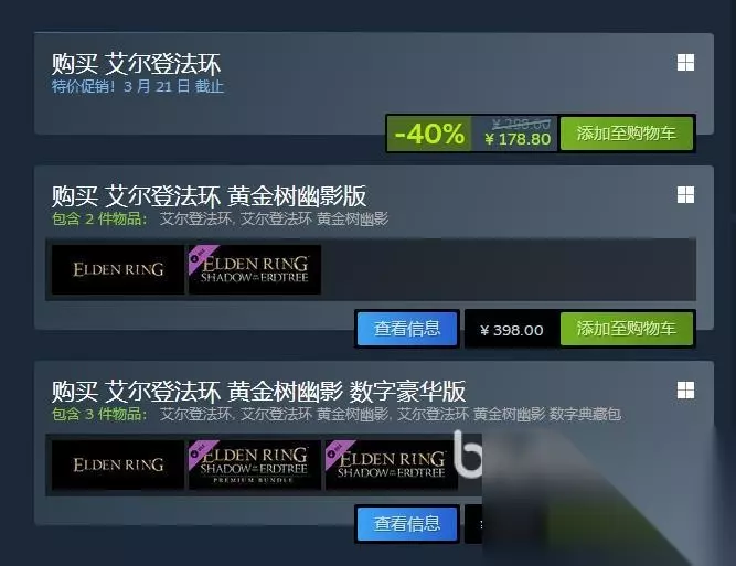只需要简单几步,打开Steam商店页面,搜索《艾尔登法环》,你会看到原价298元的标签已经消失,取而代之的是178.80元的春促价!直接点击购买,轻松入库,随时可以开始你的冒险。