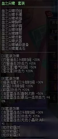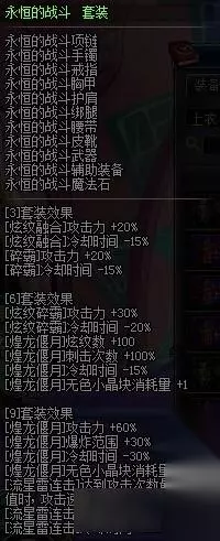 各种减冷却加攻击,套装出发点应该是强袭,小拉拉,60ex,70ex轮流外加其他大招轮流丢,60,70ex提升不错,但9件套盖掉各种首饰,对应的强化还是有些少了 推荐度★ 永恒的战斗套装: