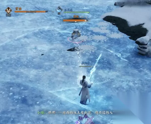 然后继续跟随NPC击败勇猛的雪蛙