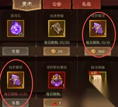 2.钥匙、赐福兑换 钥匙:黑市金币购买,日限10;黑市老钥匙兑换,日限20;攻防战商店购买,周限5 赐福:黑市老赐福兑换,日限3;公会商店购买,周限3