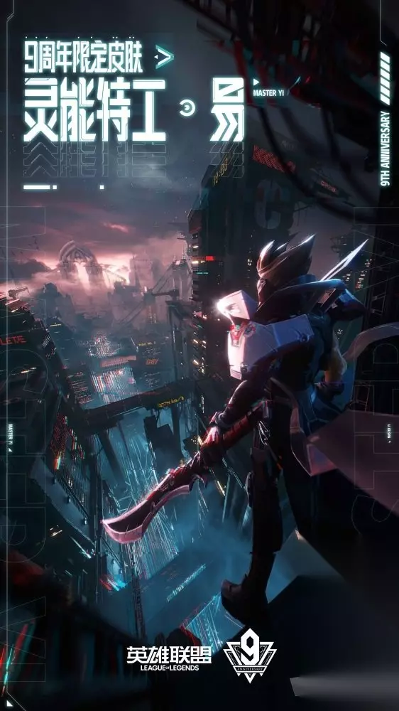 LOL9周年限定皮肤公布。随着九周年庆典活动即将到来,今日官方公布了九周年的限定皮肤,为灵能特工系列的易大师皮肤。18版本后才上线的,而国服的话预计会在九周年活…