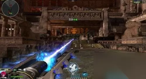 到了击破大门关卡,我们就需要提前换出精绝兽神。用榴弹来炸大门速度非常快,如果有加血技能就更好了。我们可以站在子弹箱旁边来边加子弹边用榴弹炸门,小怪围上来我们就炸一下小怪,如果有火箭筒小怪我们不要去打,原地转圈圈可以躲过火箭筒的攻击。也可以使用加血技能,如果有天神套装也可以使用电磁加农炮来击破大门!