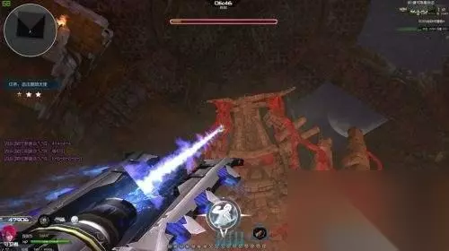 BOSS上天后的技能也是很容易躲的,我们站在地图中间。电磁加农炮的移动速度很快,所以我们可以边打边躲技能。