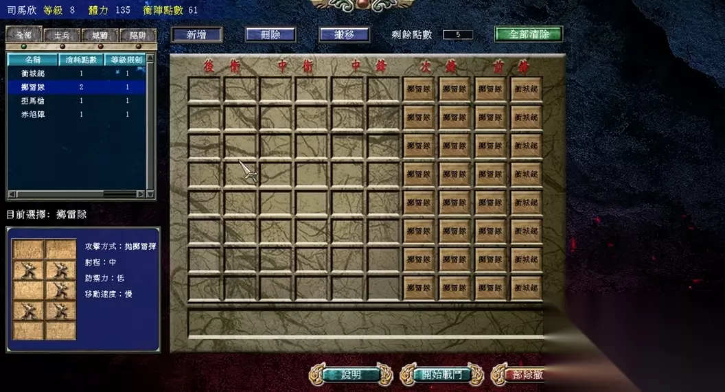 刘邦的专属技能偏向辅助,适合搭配高防御兵种,如重步兵,以持久战消耗对手。项羽则拥有高武力值和范围伤害技能,可率领骑兵或象兵进行冲锋。两人的配偶吕雉和虞姬也具备独特能力,建议编入同一部队以触发联动效果。装备选择上,刘邦适合增加智力的道具,项羽则优先配备提升攻击力的武器。刘邦势力需防范项羽残部的反扑,尤其需加强边境关卡的防御工事。项羽势力则要避免战线过长,建议采用斩首战术优先攻占敌方主城。
