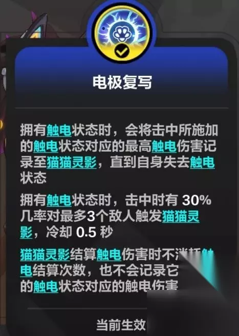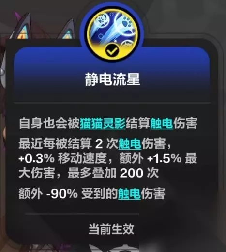 猫猫灵影结算敌人,也会结算自己,自己被结算后增伤增速,且-90%触电伤害 90级第五特性-野性电光
