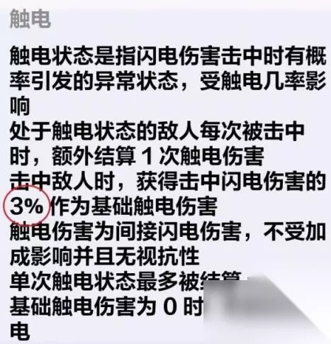 重点1:”击中“,也就是说我们的猫猫灵影伤害来源=我们打他的最高闪电伤害的百分比%+基础触电伤害,且这个伤害能造成感电(所以一定不能带”电能惩击“)。这个百分比默认是3%。