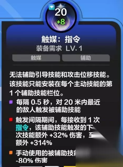 优秀的增伤机制(弹射),以及超远的施法范围(方便续自身触电buff)。 辅助技能:高压电、电能超载、闪电穿透、弹射、幽怨。哪个加成高用哪个,幽怨可以从蜡烛上补。 触媒技能:指令(加成最高,但需要叠指令),律动(简单直接)。这里不推荐疾风律动,我们放在最后讲原因。 第二技能-野蛮冲锋