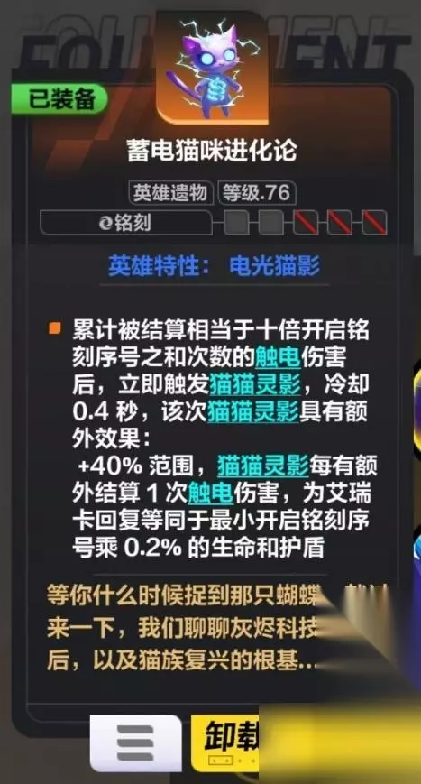 如果你能在1.5秒跑够40米(瞬移也行),你的猫猫灵影就能结算30次触电伤害(原本是10次)。 75级第四特性-静电流星
