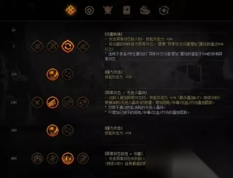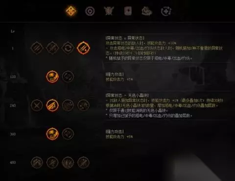 特性属性选择:在装备没有神级40级之前先点异常天赋。