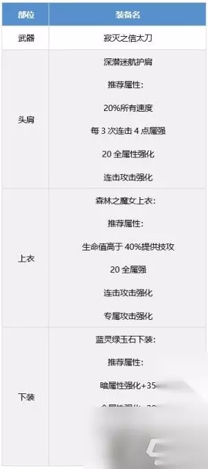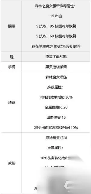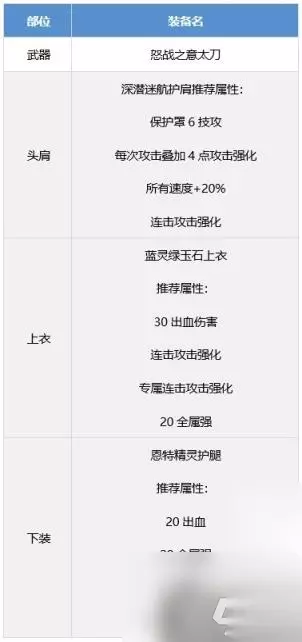二、毕业向装备搭配 前言:神界版本新增自定义装备以及词条属性,攻速出血流可升级为八自定义出血流,攻速空血流变动不大,最终搭配下出血流伤害高空血流百分之16的伤害,建议神界版本大号选择出血流。 搭配公式: 海湾护肩或者魔女腰带有CD词条搭配火龙+恩特戒指佩带狂龙武器。 魔女戒指有CD搭配深潜蓝灵海湾护肩+深潜魔女腰带+黑龙贴膜佩带邪龙武器 海湾护肩魔女腰带都有CD搭配黑龙+恩特戒指佩带狂龙武器。 【方案一】出血流 搭配说明: 原有的攻速出血流上升级而来的神界出血流。 ·新增深潜腰带与魔女项链,建议有4词条魔女/深潜腰带再替换攻速鞋 ·在耳环拥有范围6技攻时,狂龙武器与吞噬本源武器差距不足1%,能换来大量速度以及技能范围,非常划算。 ·如果已经有了4词条深潜和药王护肩那么就可以不选择深潜腰带,直接选择魔女腰带。 ·魔女戒指需要搭配邪龙武器来触发,一个魔女戒指的冷却恢复词条足以应对地下城。 ·武器邪龙狂龙均可,根据自身自定义来选择搭配。