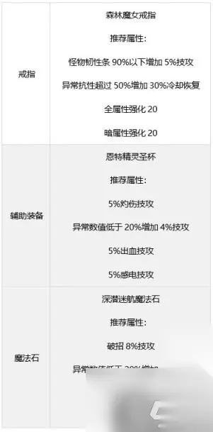(截图为示例,可自行调整) 【方案三】攻速直伤流 搭配说明: 此搭配优势为速度快,直伤。劣势:自定义装备不容易获取。 ·此搭配比神界出血流伤害低6%。 ·需要在怪物韧性条打掉10%以后才能发挥最高伤害,因此打桩无法发挥全部伤害。 ·无自带异常抗性职业使用此搭配时,必须搭配邪龙武器来触发戒指30%技能冷却恢复。 ·特殊三换成怪异伤害比范围贴膜高2.5%,但是技能范围特别小,需要自行选择。 ·没有蓝灵裤子之前可佩戴机械装甲下装,项链选择爆龙王。