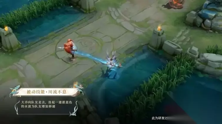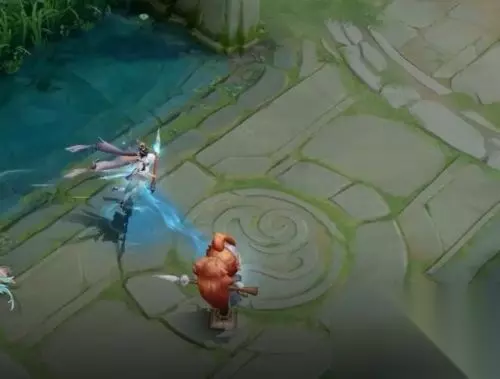 普攻很有意思,A出去的,是一条蓝色小鱼。如果不仔细看,可能跟水流差不多。