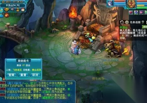 4、摘取20个鲜果(单人)。 点击地上的野生植物摘取(有几率进入战斗,简单)。