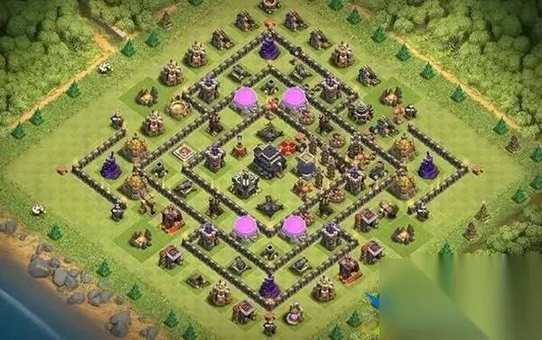 部落冲突9本最强布阵是什么2023?虽然在不断地版本更替中,部落冲突这款游戏的最高等阶已经不再是9本,是开放了更广更高的位置,但是毋庸置疑的是,九本,依旧是广大新手,回归玩家需要好好沉淀好好发育与决定未来发展方向的时期,因为需要花费很多时间才能抵达后面的区域,所以在这个阶段中我们有足够的时间去思考去决定,不过在那之前,抵达九本的各位还是优先了解一下这个阶段的阵型搭配知识点比较好,毕竟——要先好好地活下去再谈其他的! 2023九本最强布阵高清图 一、9本资源保护阵 1、阵营名称:资源保护阵 2、阵营特色:外面放防御建筑,阻止敌人进攻。 3、阵营布局:金币罐子、圣水罐子放角落里,黑水罐子放正中间。