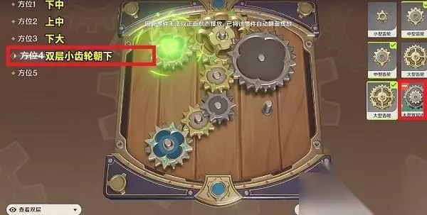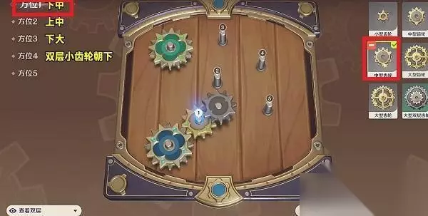 相关推荐:原神恒动械画攻略大全 原神复原械画部件之四 1、首先玩家在左侧选择方位1,之后在右侧选择一个中型齿轮。